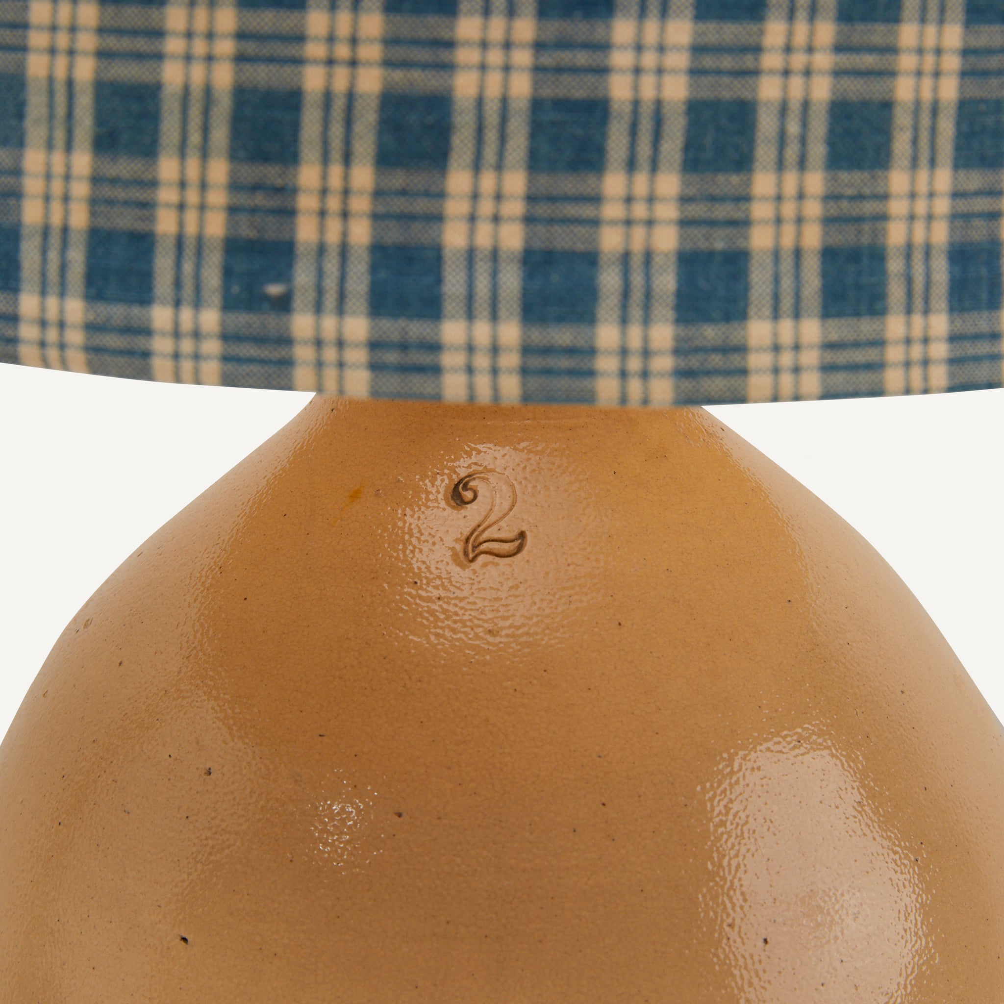 - Blue and cream checked fabric shade