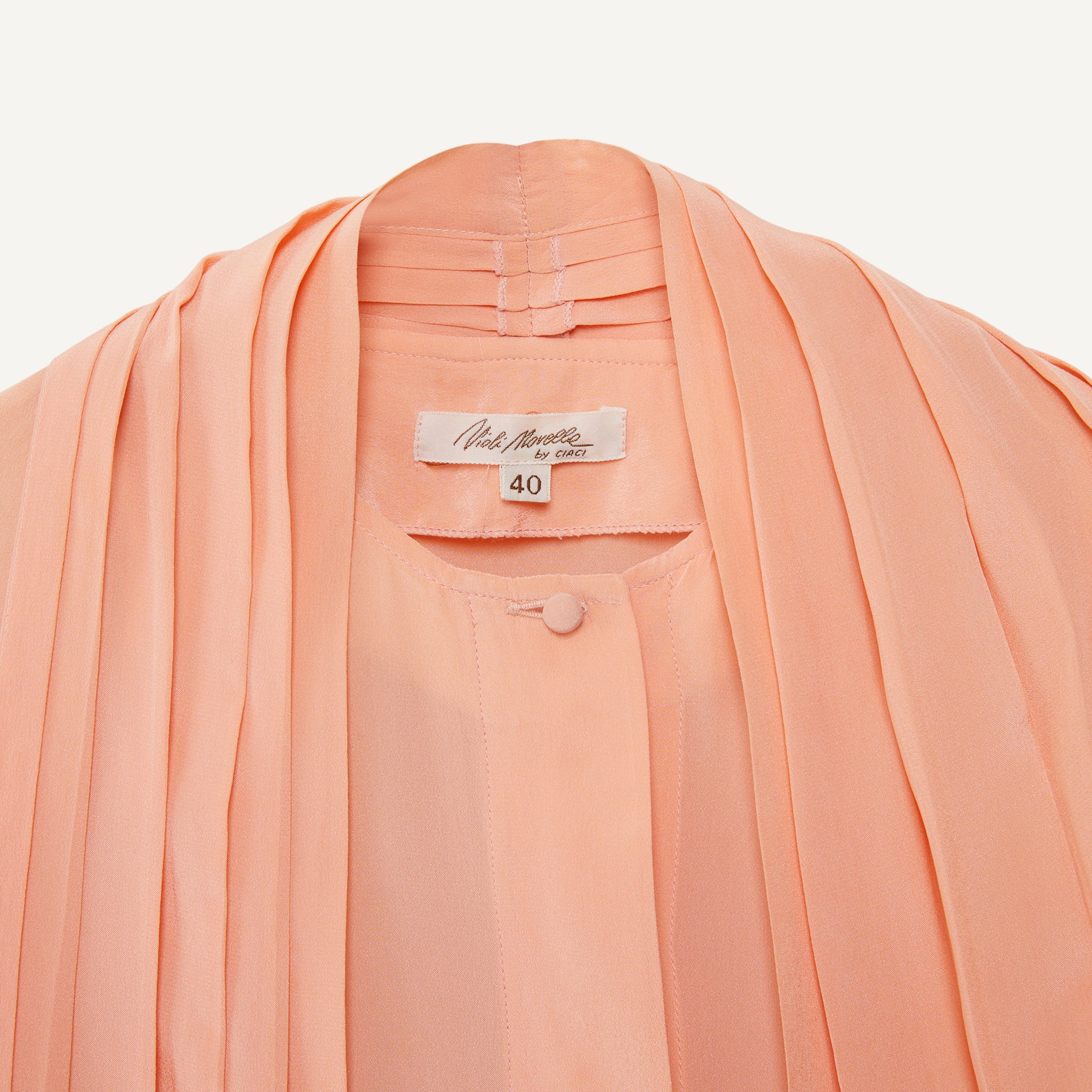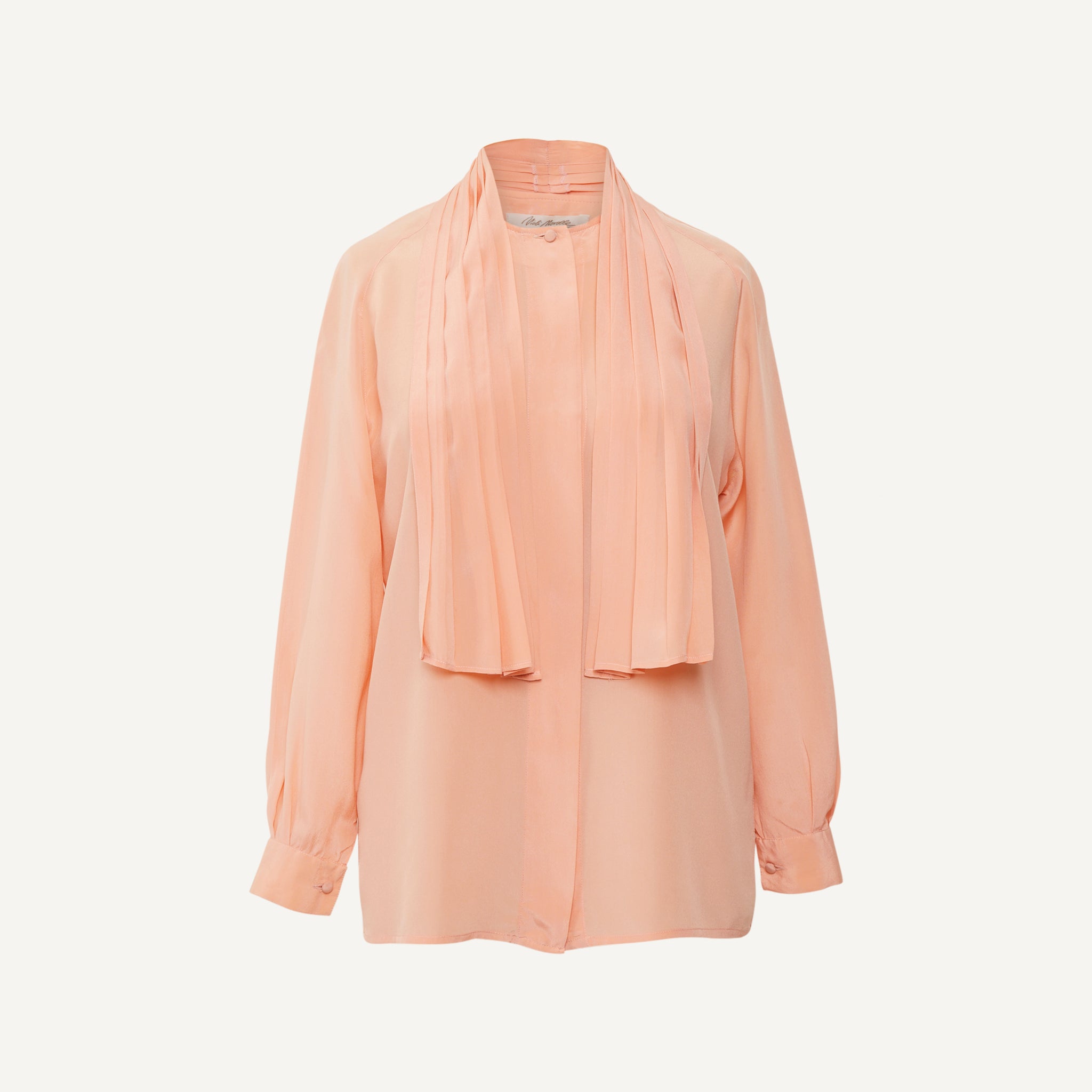 - Attached pleated tie that can be draped or gently tied