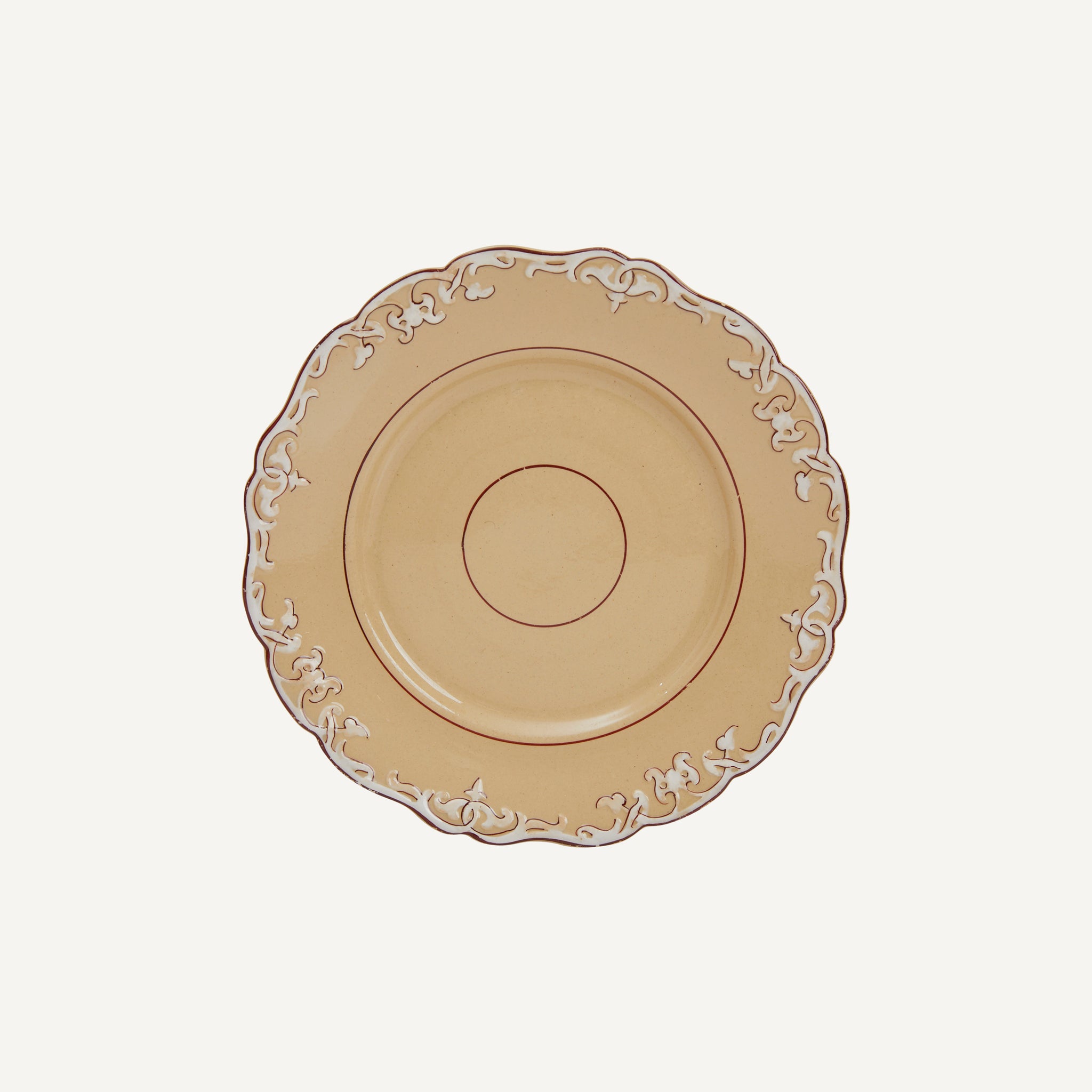 - Drab glaze with raised white boarders and brown pin striping