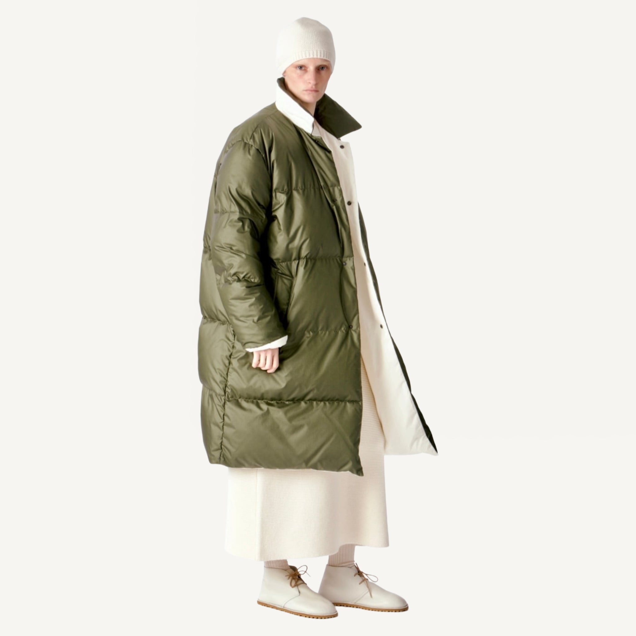 • Ivory cotton / Khaki green technical nylon